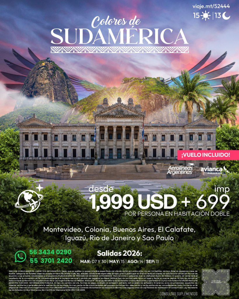 Salidas 2026: Mar 05 | Abr 14 | Ago 17 | Sept 08